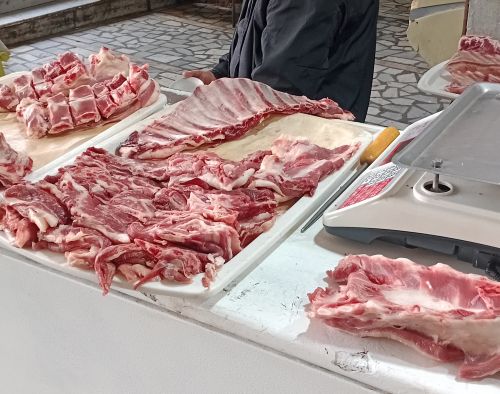 Ono što je meni privuklo pažnju, a to je da se meso prodaje bez rashladnih vitrina. Komadi mesa narezani i poslagani na gomile, kupuju se bez ikakve dileme. Svinjetine, naravno, nema.